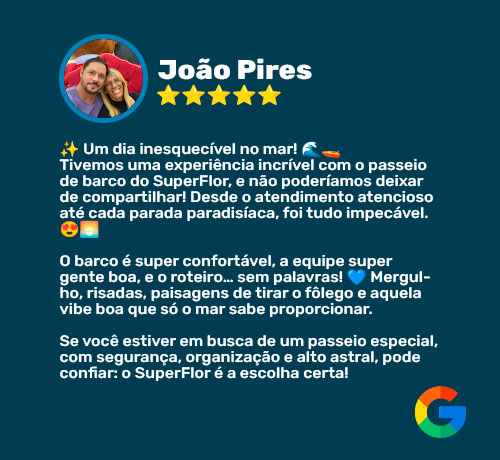 A bordo do Super Flor, cada viagem se transforma em história. Seja para relaxar, celebrar ou explorar, estamos prontos para te receber de braços abertos e coração no mar.